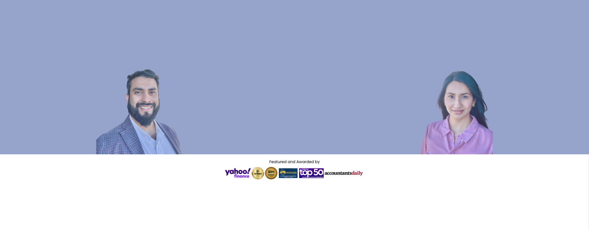 Two people on a purple background; logos for Tax App Accountants and media outlets are at the bottom.
